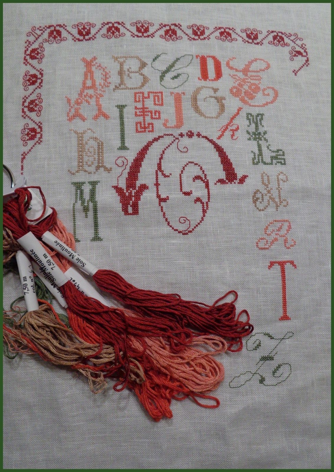 bonne continuation pour la frise (ce n'est pas ce que j'aime broder le plus, mais quand il faut, il faut....courage