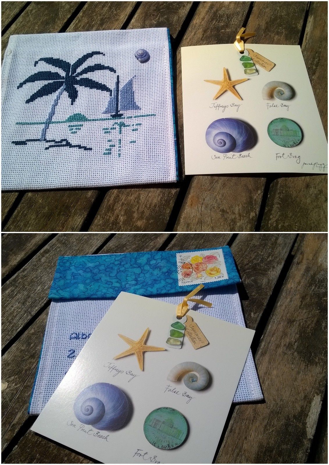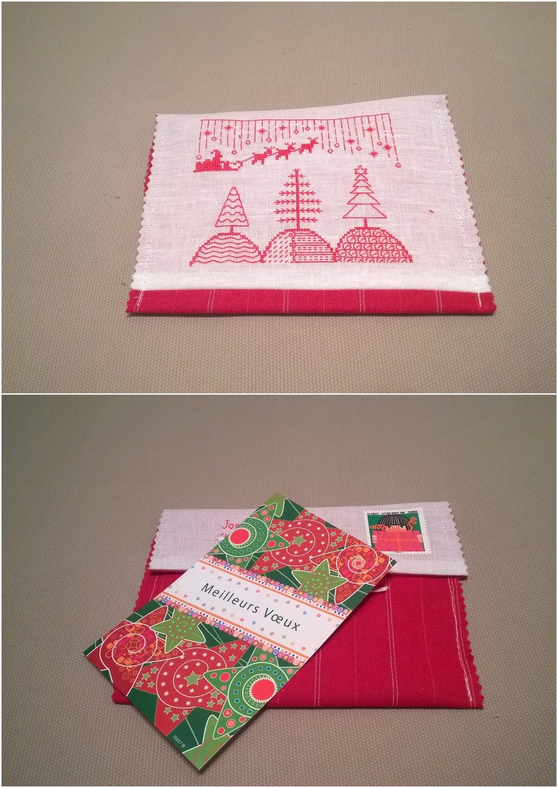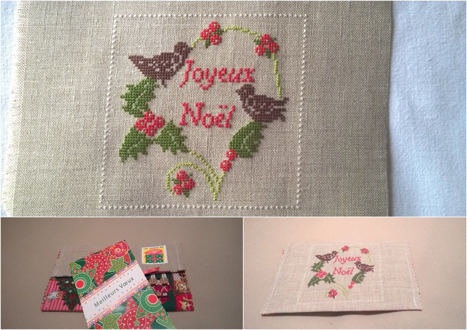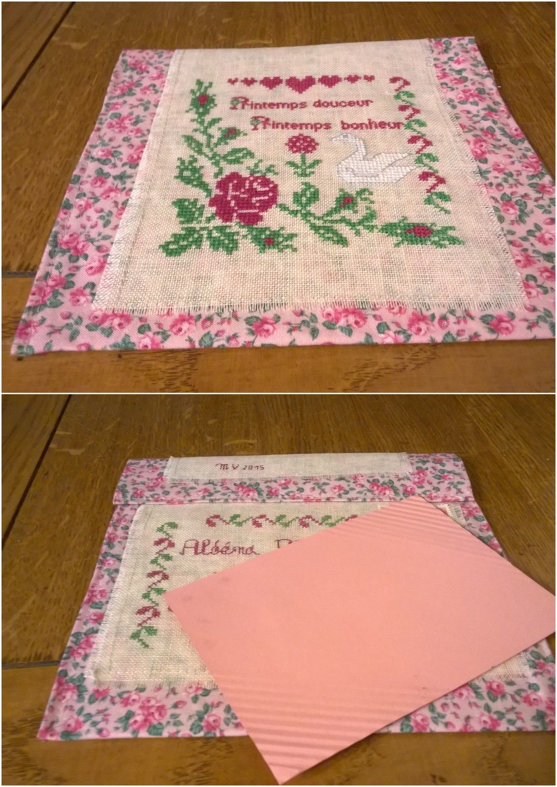 En fait, j'ai brodé plusieurs petits motifs que j'ai montés en enveloppes.