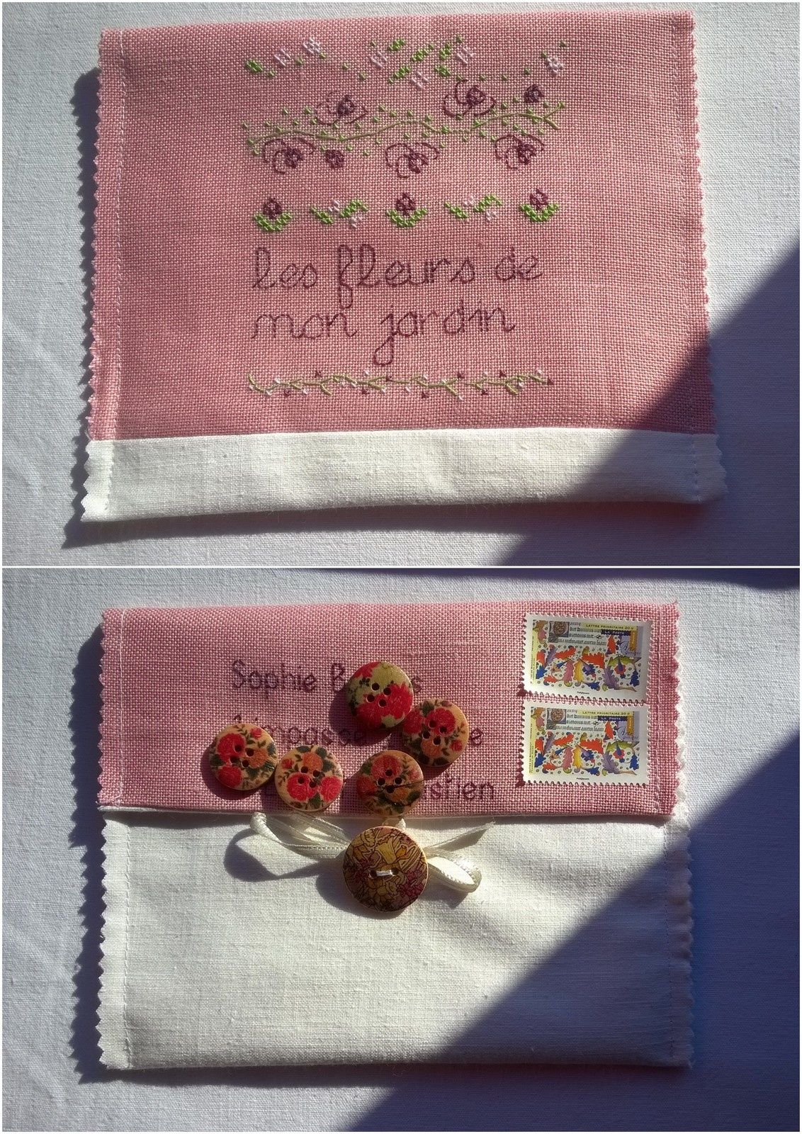 En avril j'ai fait un échange d'enveloppes brodées sur le thème des fleurs avec Sophie B.