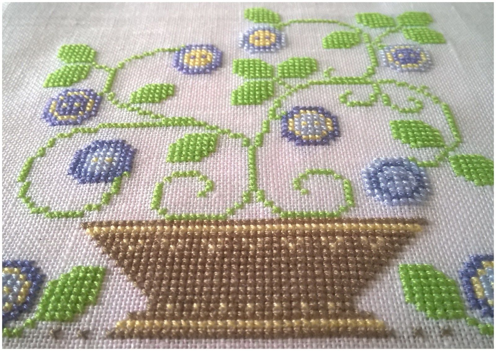 J'ai choisi de broder plusieurs petites frises fleuries issues du livre "Les saisons au point de croix" de Jennifer Lentini.