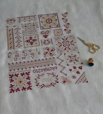 Et comme la fin de l'année approche et avec elle la fin de notre SAL, je vous montrerai bientôt mon choix de modèle pour le SAL 2017 - toujours un free, des frises et des lettres, du monochrome et de taille tout à fait raisonnable.